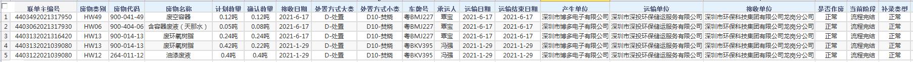三、2021年危廢處理臺(tái)賬(圖片放大后可查閱全部?jī)?nèi)容):